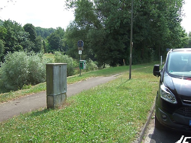 Das bereits reichlich vermooste Schild weist in entgegengesetzter Richtung auch deutlich darauf hin, "hier endet der Radweg und hier endet auch die Benutzungspflicht". Ein kecker Radwegweiser zeigt dennoch an, dass die Radroute geradeaus weiterverläuft - auf ebendiesem 15 cm breiten Trampelpfad. Begegnungsverkehr? Fußgänger? Wohin damit? Radfahrer dürfen doch gar nicht auf solch schmalen Pfaden fahren!?