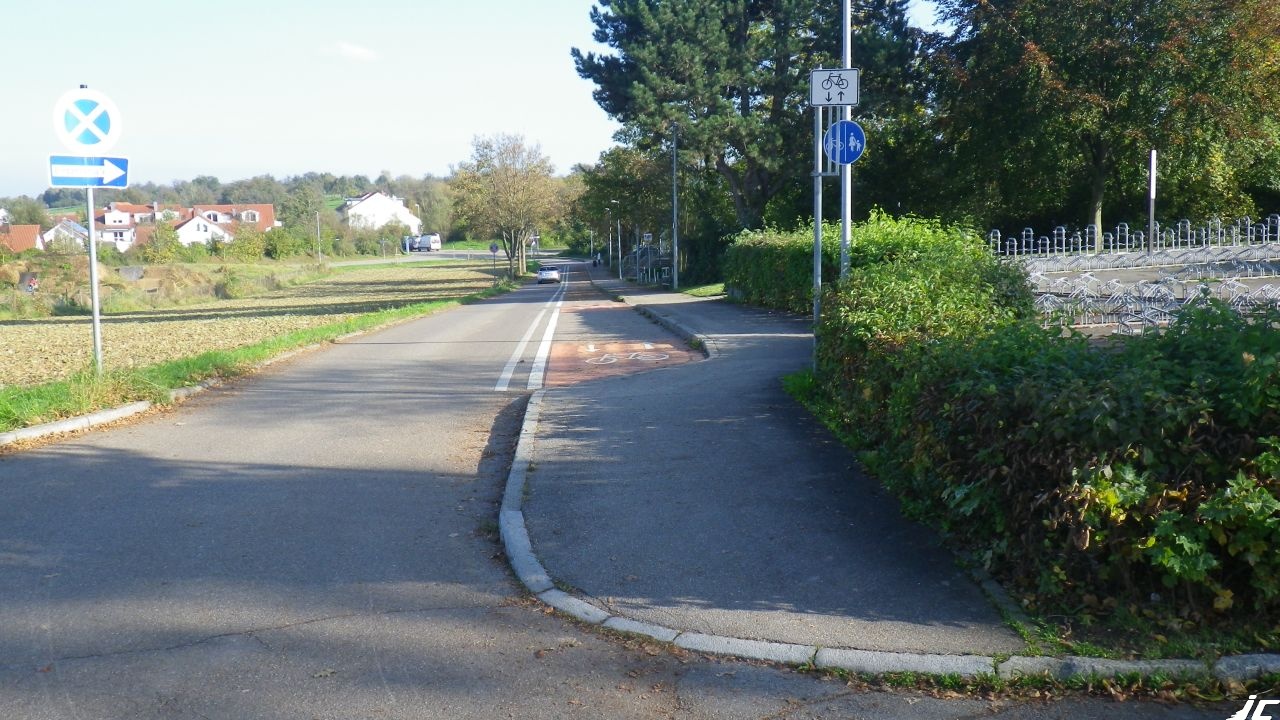 Radfahrer wie Fußgänger sammeln sich offensichtlich alle auf diesem Weg. Zum Glück kommen zur Schulzeit nicht genauso viele den Hang hinauf wie hinunter. Da sich aber große Sporthallen und Freizeiteinrichtungen hier befinden, ja, sogar ein hochklassiger Dirtbike-Park, ist werktags oft einiges los. Schließlich kommt hier auch ein stärker frequentierter Radweg aus Richtung Plattenhardt an, auf dem auch viele berufstätige Pendler fahren. Auch die müssen oft hier durch.