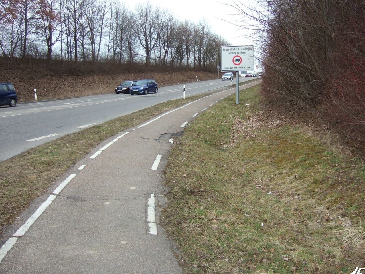 Die Wegbeschaffenheit ist auch unwürdig. Kein Vergleich zur Fahrbahn daneben. Es ist vielleicht wichtig zu wissen, dass Filderstadt, die Kreisstadt südlich von Stuttgart, bundesweit zu den teuersten Kleinstädten gehört, was Immobilienpreise und Mieten anbelangt und enorme Gewerbesteuersätze erhebt. Arm ist Filderstadt nicht.
