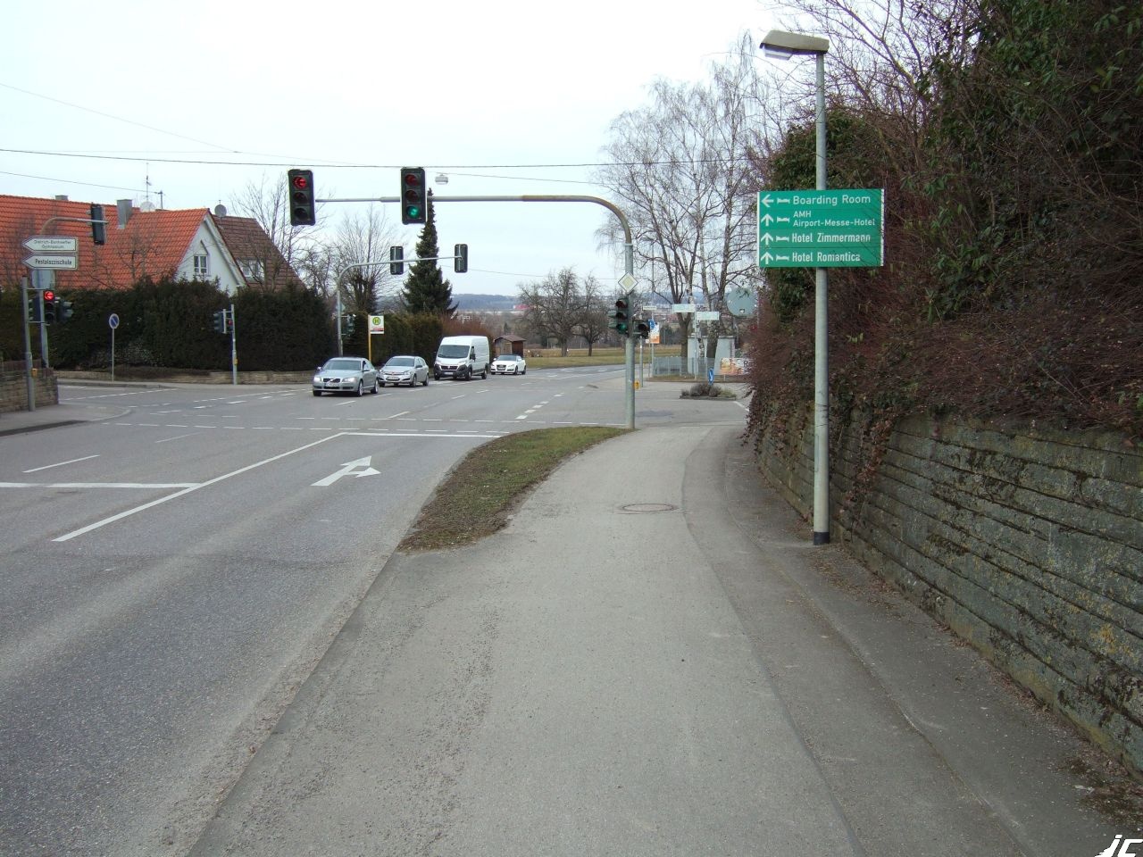 In Sielmingen angekommen ist der Weg zwar breiter, doch nach wie vor benutzungspflichtig für beide Richtungen. Eine Fahrbahnrückführung vor der Kreuzung ist ebenso nicht vorhanden wie eine legale Möglichkeit, nach links abzubiegen. Mal schauen, was nach der gezeigten Kurve kommt....