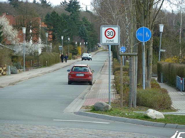 Aber selbst wenn hier heine Tempo-30-Zone wäre dürfte der Radweg wegen seiner viel zu geringen Breite niemals benutzungspflichtig beschildert werden.