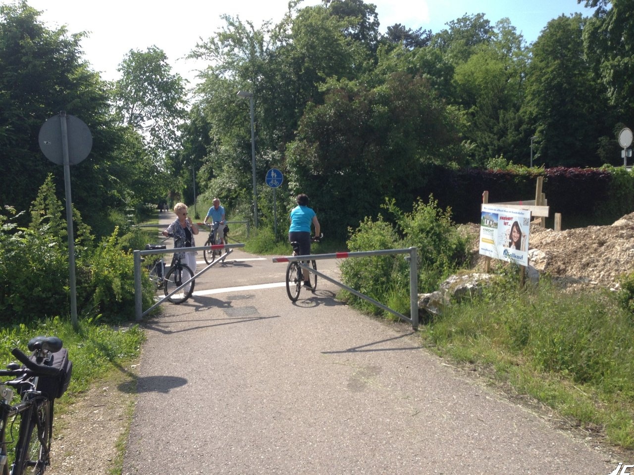 Diese Umlaufsperren liegen an der Zufahrt zum gräflichen Anwesen des Grafen von Rechberg. Eine Bürgerinitiative ermittelte hier bis zu 130 Radfahrer pro Stunde bei 0 - 3 Kfz im selben Zeitraum. Ein ziemlich eindeutiges Indiz einer unverfrorenen Schikanierung von Radfahrern und Bevorzugung des selbst kaum vorhandenen Kfz-Verkehrs!