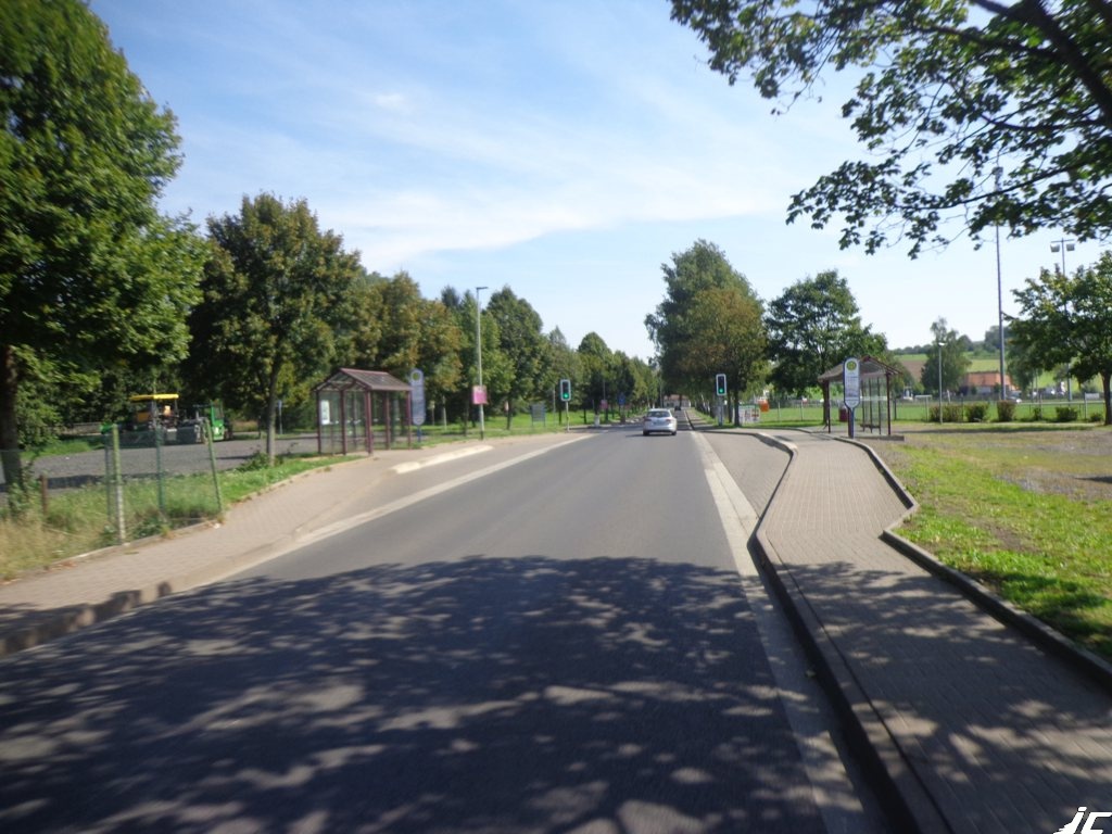 Der stellenweise viel zu schmale Radweg - 2,50 m sind hier Vorschrift (mindestens), führt auch sanft in Bushaltestellen direkt in den Aufstellungsbereich der Buspassagiere hinein.