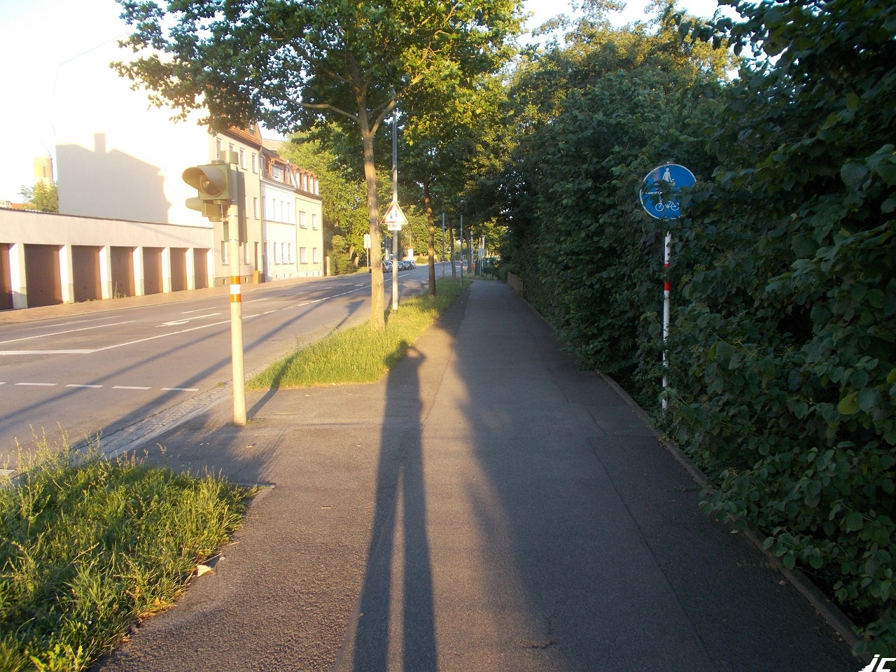 Galerie Startseite » Pannenflicken 2016 » 7. Platz - Bamberg » 7 mit Benutzungspflicht 1062 1062 1063 1063 1064 1064 1065 1065 1066 1066 1067 1067 [Slideshow bei deaktiviertem JacaScript nicht nutzbar] Zurück Bild 6 von 9 Weiter Bild 8 von 9 1069 1069 1070 1070 7 mit Benutzungspflicht Bild-Informationen Beschreibung Das die Fortführung des benutzungspflichtigen Geh- und Radwegs anordnende Schild steht erst ein geraumes Stück später und ist von der Kreuzung her kaum auszumachen - nicht nur wegen des Bewuchses.