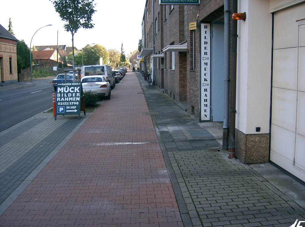 Direkt an den Radweg angrenzende Parkbuchten ohne Sicherheitstrennstreifen, handtuchbreiter Weg für Fußgänger. Und benutzungspflichtig in beiden Richtungen! Was geschieht bei sich unvermittelt öffnenden Autotüren? Und wenn zusätzlich noch Fußgänger unterwegs sind? Und dann vielleicht noch ein entgegenkommender Radler? Für alle, die diesen Weg benutzen (müssen) eine Horrorvorstellung. Da kann man im Falle eines Unfalles durchaus über Schadensersatzforderungen in Richtung der anordnenden Behörde nachdenken.