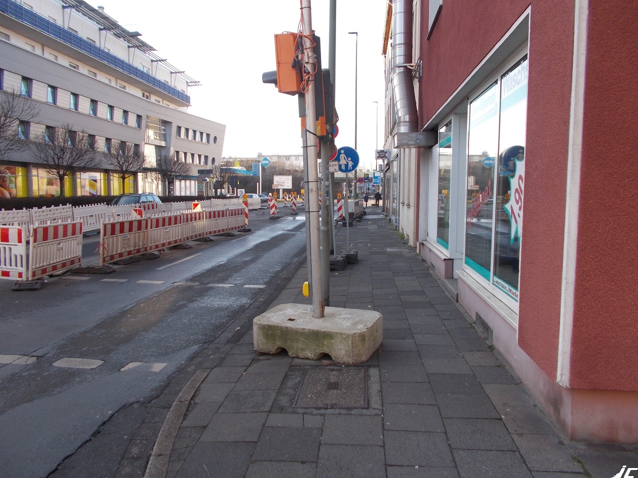Nach der Kreuzung ist bei gleichbleibender räumlicher Situation wieder Mischverkehr bis zum Ende der Baustelle vorgesehen.