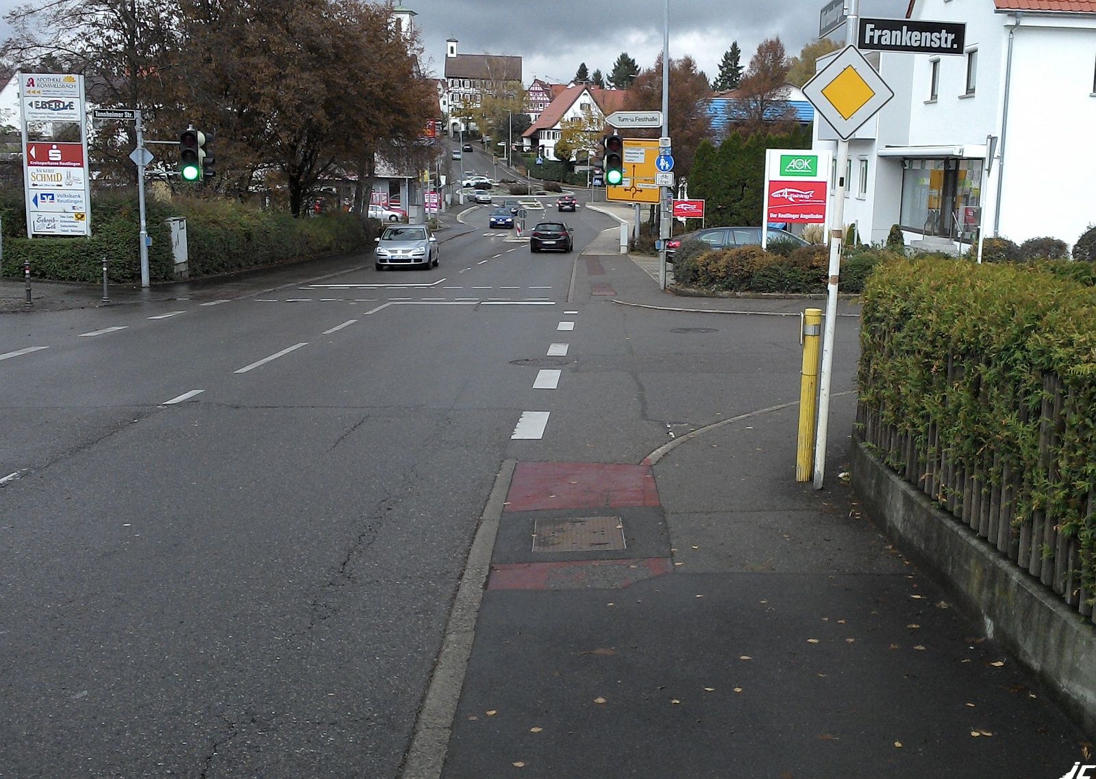 Galerie Startseite » Pannenflicken 2016 » 2. Platz - Reutlingen » Reutlingen_05_web 1073 1073 1074 1074 1075 1075 1076 1076 [Slideshow bei deaktiviertem JacaScript nicht nutzbar] Zurück Bild 4 von 12 Weiter Bild 6 von 12 1078 1078 1080 1080 1082 1082 1083 1083 1084 1084 1079 1079 1081 1081 Reutlingen_05_web Bild-Informationen Beschreibung Im Bereich der Frankenstraße - die Furtmarkierung fehlt wieder - aber: Danach kommt nun ein freigegebener Gehweg. Hinter dem großen gelben Schild steht etwas interessantes.