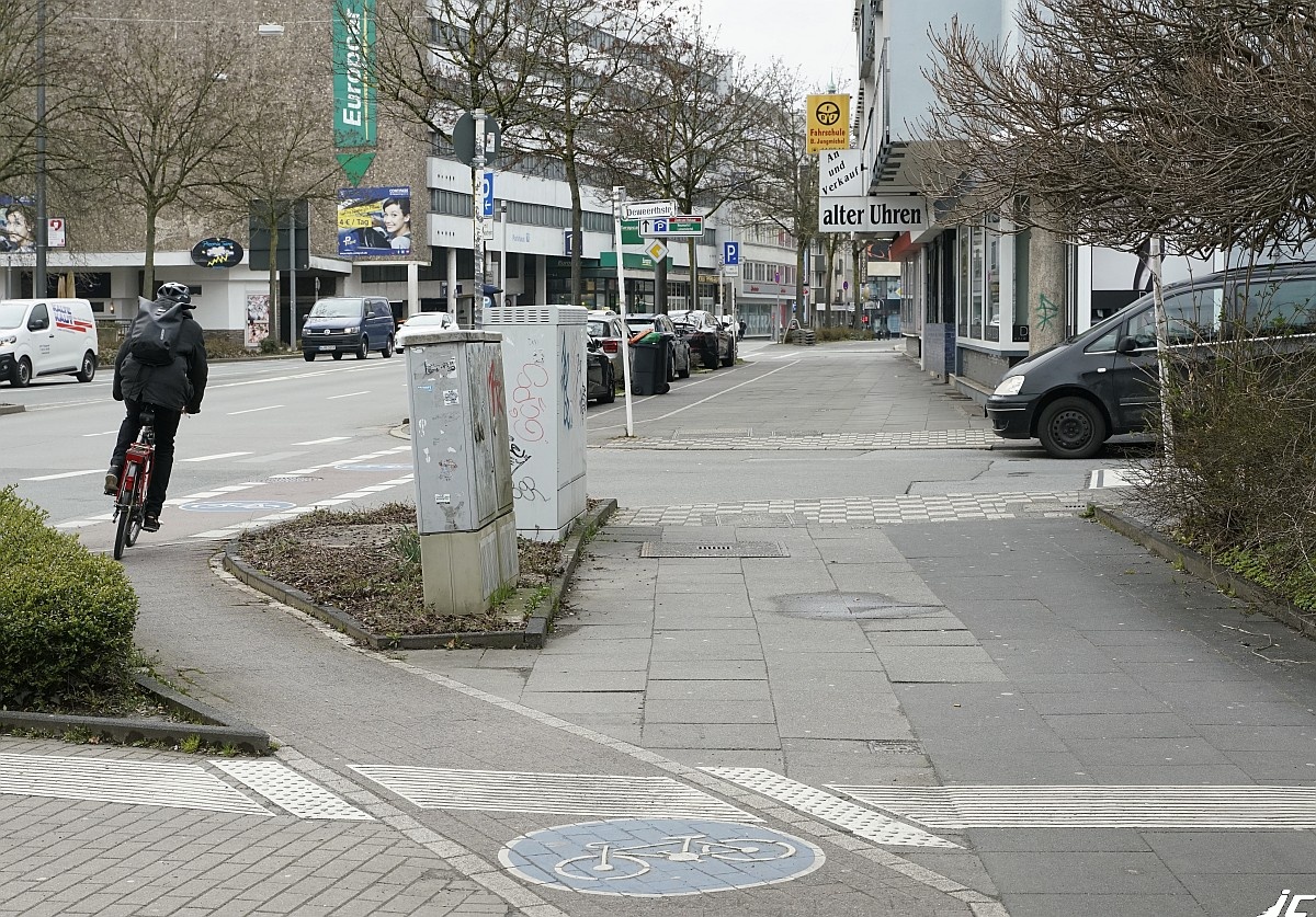 In Gegenrichtung, also Ausfahrt aus dem Kreisverkehr Hofkamp Richtung Westen wurde erst Anfang März 2021 ein Radfahrer an der Ausfahrt Deweerthstraße schwer verletzt. → Pressemitteilung: