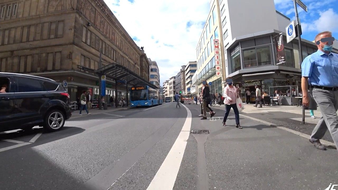 Jedenfalls schaut kaum einer, bevor er den Radfahrstreifen betritt. Da diese Fläche den Fußgängern fehlt, wird der Radweg auch gerne als Ausweichfläche für den Fußgänger-Längsverkehr benutzt. Der Radweg ist somit als solcher absolut untauglich und keinesfalls sicher befahrbar, wenn man schneller als Schrittgeschwindigkeit fährt und nicht ständig anhält.